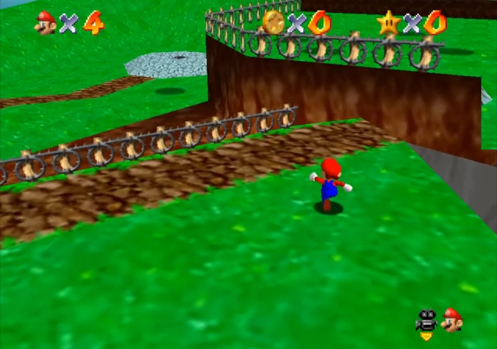 Horizontal PU movement is comparable to movement through a five-dimensional space, as Mario can be modeled as travelling along five axes: relative X, Y, relative Z, PU X, and PU Z. This is because Mario can adjust his speed and angle to move relatively around the stage regardless of how many PUs he moves in the X or Z dimensions.
